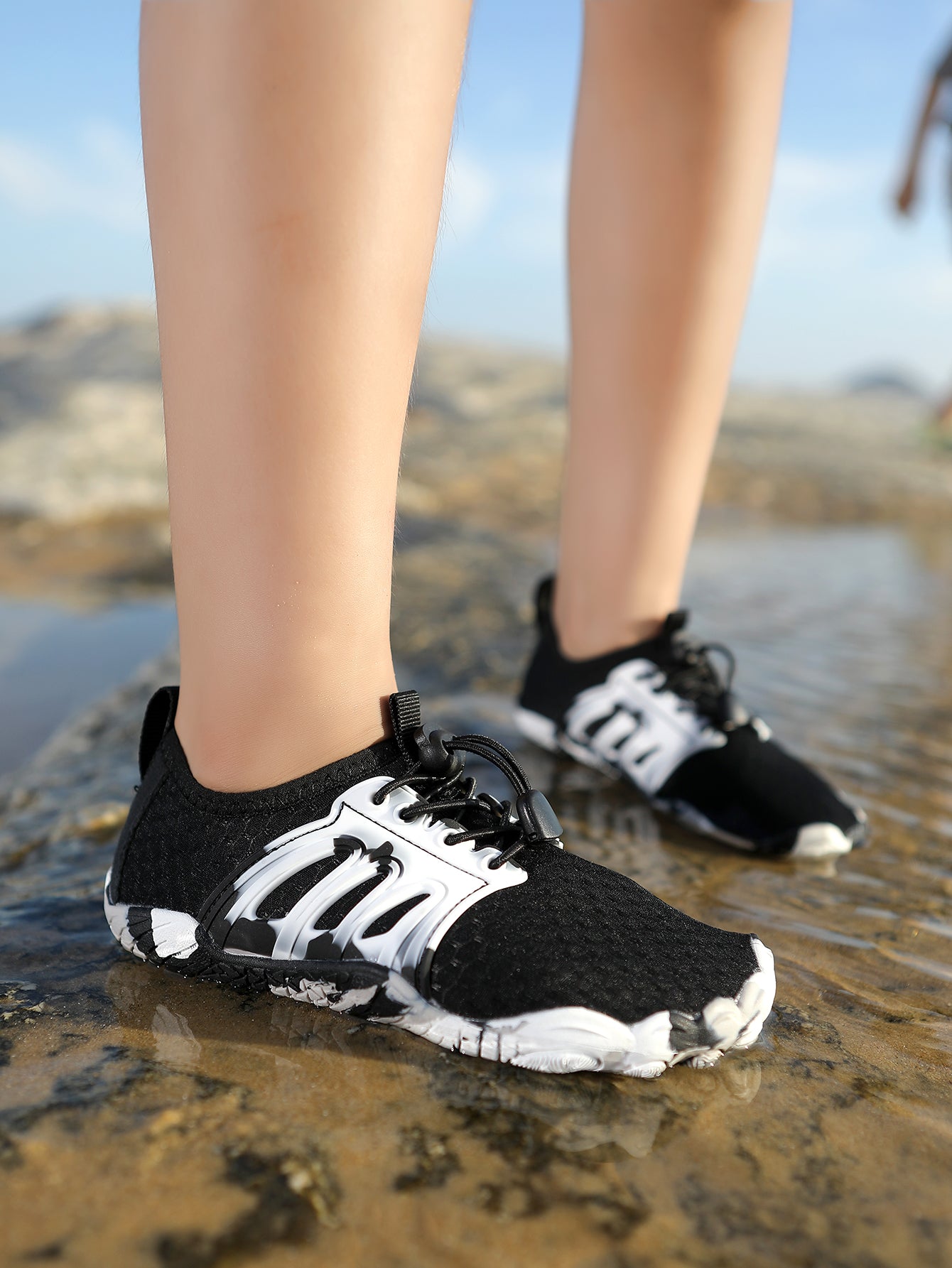 I got these because I needed water shoes to safely get out to fix a pond diffuser. Not only were these perfect, but they're my new go to shoes over my boots for outdoor walking! So easy to put on, super comfortable, feels like socks with support, like barefoot but can easily walk on rocks or Legos.